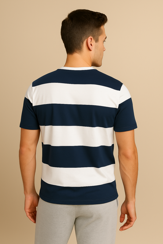 Regular price Rs. 399.00Regular priceUnit price / perRs. 999.00Sale price Rs. 399.00Navy & White Striped Polo Shirt