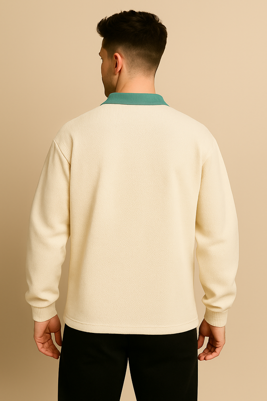Beige Waffle Knit Polo Sweatshirt